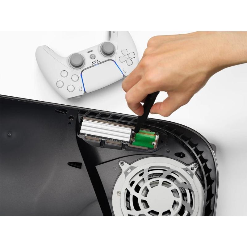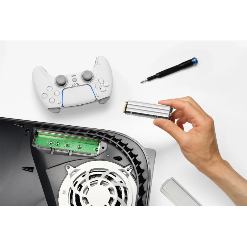 DISIPADOR DE CALOR DE ALUMINIO DE PERFIL BAJO: El disipador de calor de aluminio está diseñado para ajustarse físicamente a la PS5 y ayuda a dispersar el calor y reducir la limitación, para que tu SSD mantenga un alto rendimiento sostenido desde el primer momento.