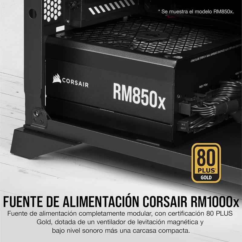 RMX SERIES RM1000X: fuente de alimentación ATX de 1000 vatios completamente modular con certificación 80 PLUS Gold (EU) Las fuentes de alimentación completamente modulares CORSAIR RM1000x Series con conectores EPS12V se fabrican con componentes de la máxima calidad para proporcionar una potencia eficiente 80 PLUS Gold a su PC, con un funcionamiento prácticamente silencioso.