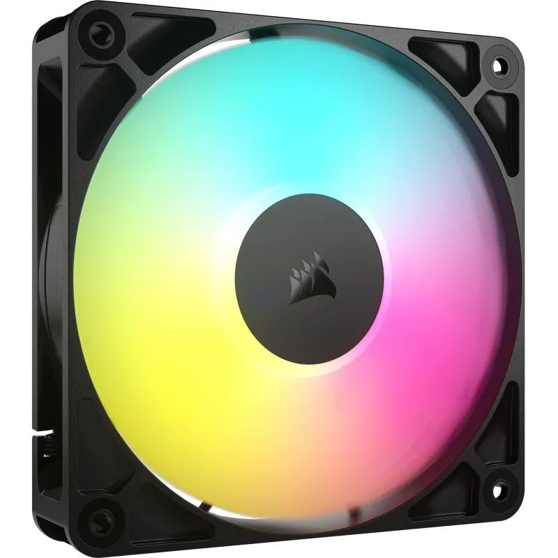 Ventilador Suplementario Corsair RS120 ARGB de 12 cm PWM flujo de aire de hasta 72,8 cfm bajo ruido (10 dB) y diseño robusto, color Negro