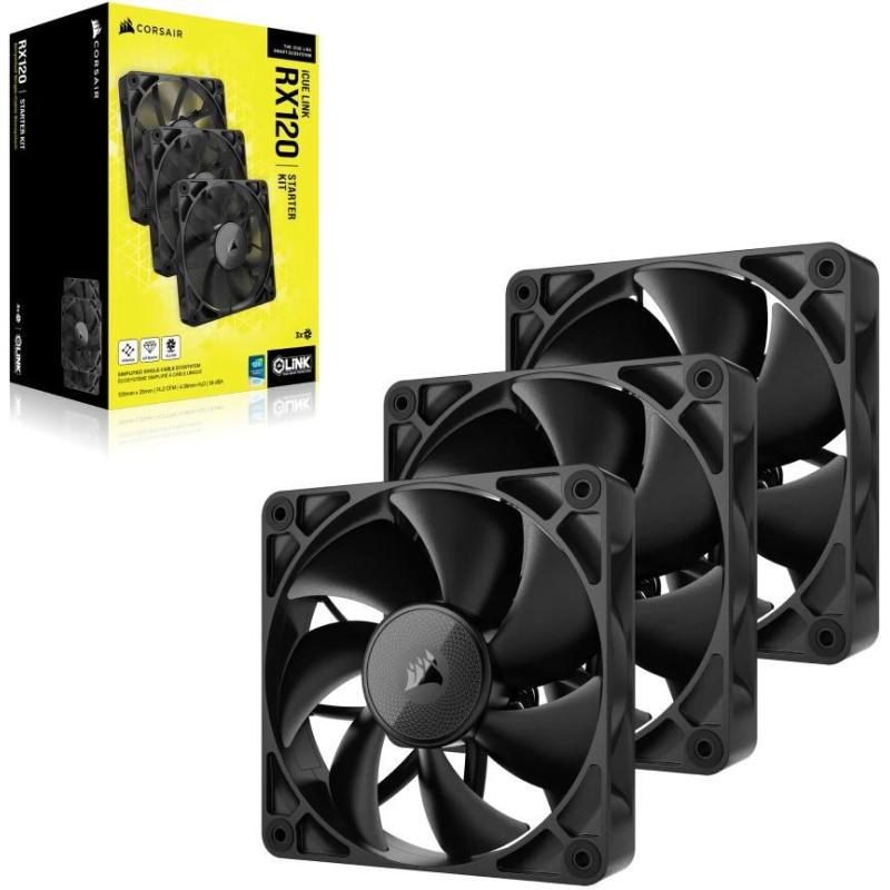 Ventiladores Suplementarios Corsair RX120 PWM 3 Unidades de 120 mm, Velocidad Máxima de 2100 RPM, Flujo de aire de 73,5 cfm Color Negro