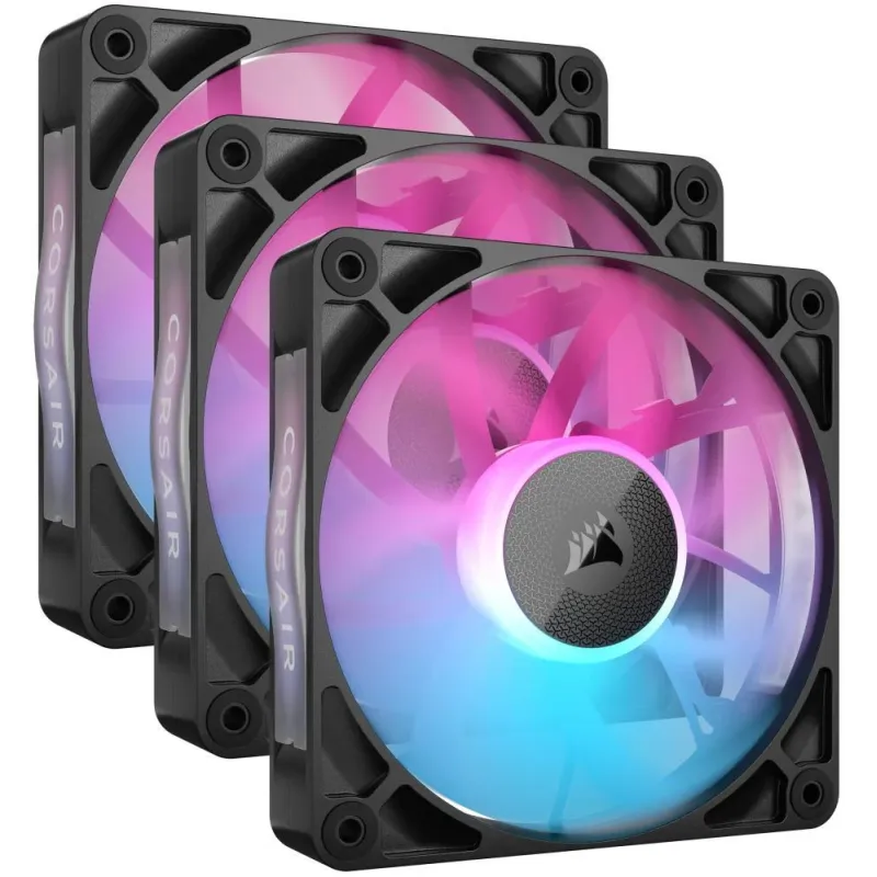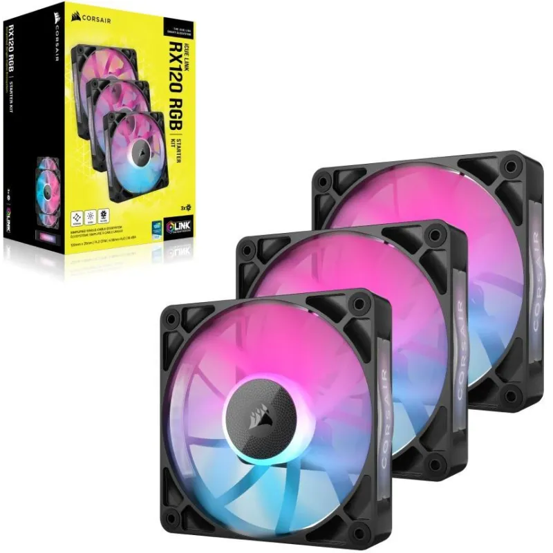 Ventiladores Suplementarios Corsair RX120 RGB PWM 3 Unidades de 120 mm, Velocidad Máxima de 2100 RPM, Flujo de aire de 73,5 cfm Color Negro