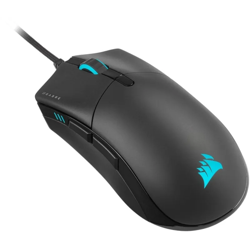 RATÓN ÓPTICO PARA JUEGOS SABRE RGB PRO CHAMPION SERIES (EU): El ratón para juegos CORSAIR SABRE RGB PRO ha sido diseñado siguiendo las indicaciones de los profesionales de los deportes electrónicos (eSports), pesa solo 74 g y está equipado con un cable Paracord flexible que reduce el arrastre, por los que sus movimientos serán siempre ágiles y sin obstáculos.