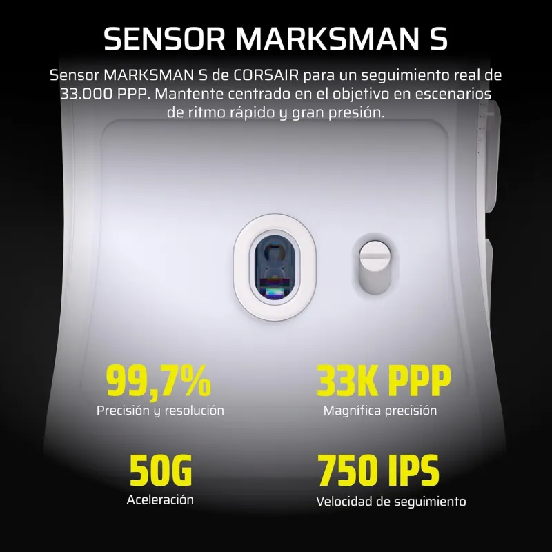 • Sensor CORSAIR MARKSMAN S con 33.000 DPI, 750 IPS y 50 G
