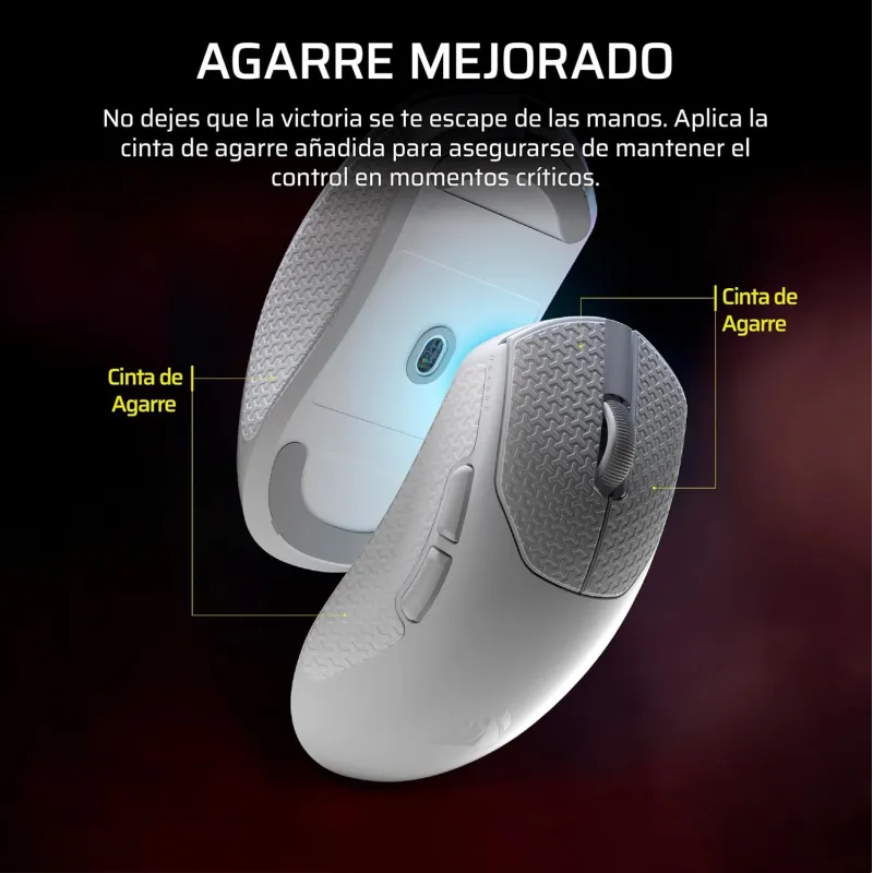 ERGONOMÍA LIMPIA, ACCESORIOS PARA PERSONALIZAR EL DESLIZAMIENTO: La forma del Corsair Sabre V2 Pro se adapta a diversos agarres sin forzar la postura. En la caja, encontrarás cinta de agarre y patines de repuesto para modular tracción y fluidez según tu superficie y estilo. Ajusta la fricción para microcorrecciones o apuesta por un glide más veloz para entradas explosivas; tú escoges. La ausencia de RGB reduce peso y distracciones, y la construcción ultraligera mantiene la rigidez necesaria para competir. Esta filosofía de diseño te permite centrarte en la puntería, con un flujo de movimientos natural y preciso que se siente desde el primer game.