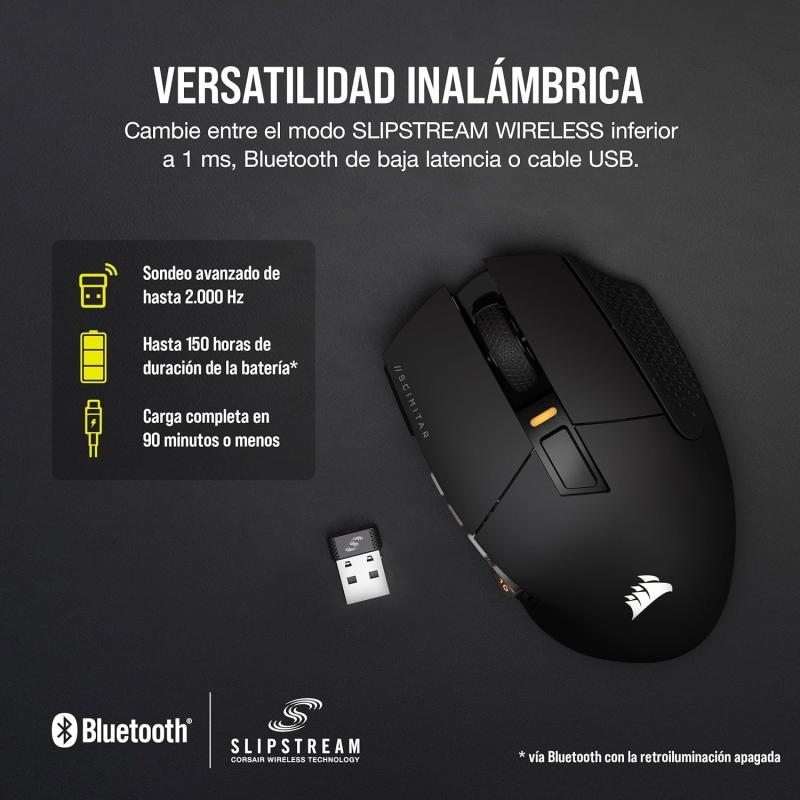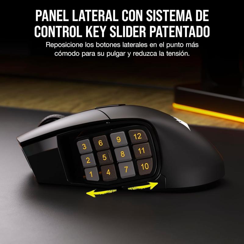 RATÓN PARA JUEGOS SCIMITAR ELITE WIRELESS MMO (EU): El ratón para juegos MMO SCIMITAR ELITE WIRELESS le brinda 16 botones totalmente programables y un panel lateral ajustable de 12 botones, para que pueda moverse con menos tensión o fatiga, sin cables.