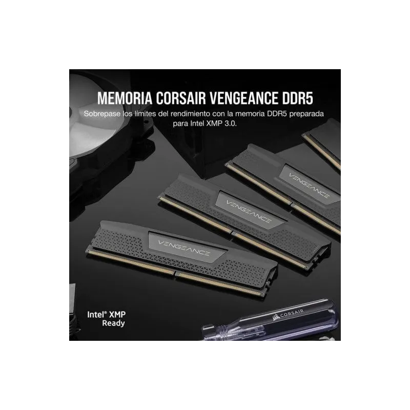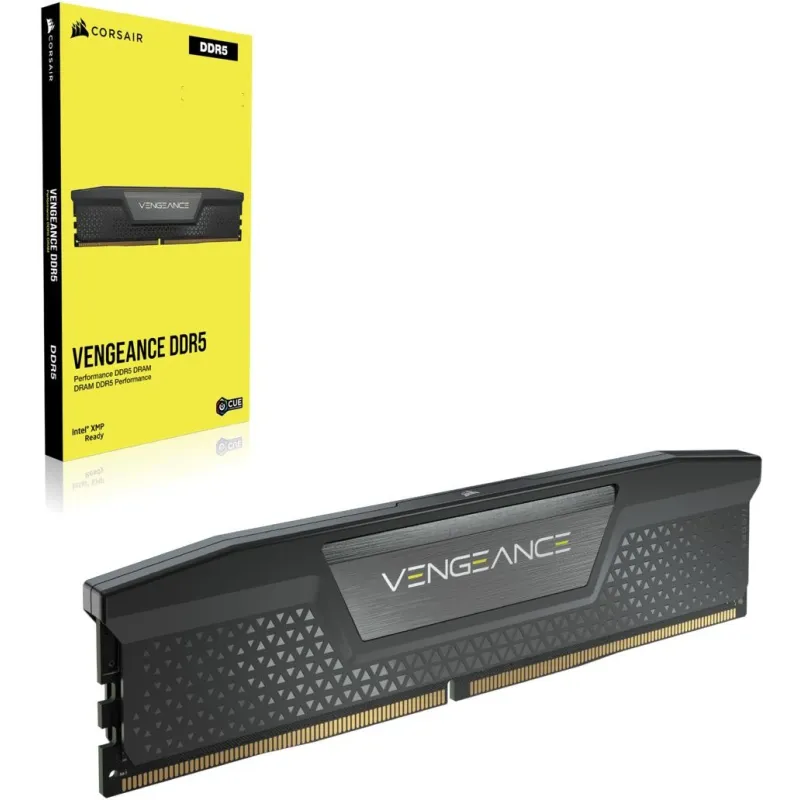 KIT DE MEMORIA DDR5 DRAM VENGEANCE DE 48 GB (2X24 GB) A 5200 MHZ C38 — NEGRO: CORSAIR VENGEANCE DDR5, optimizada para placas base Intel, ofrece las mayores frecuencias y capacidades de la tecnología DDR5 en un módulo compacto de alta calidad que se adapta a su sistema.