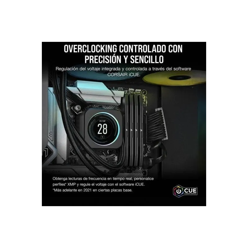 REGULACIÓN DEL VOLTAJE INTEGRADA: Tiene la potencia y el control en sus manos. La regulación del voltaje integrada con el control de software iCUE ofrece un overclocking más fácil, estable y afinado que nunca.