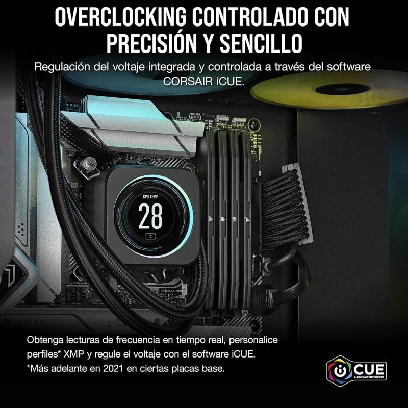 REGULACIÓN DEL VOLTAJE INTEGRADA: Tiene la potencia y el control en sus manos. La regulación del voltaje integrada con el control de software iCUE ofrece un overclocking más fácil, estable y afinado que nunca.