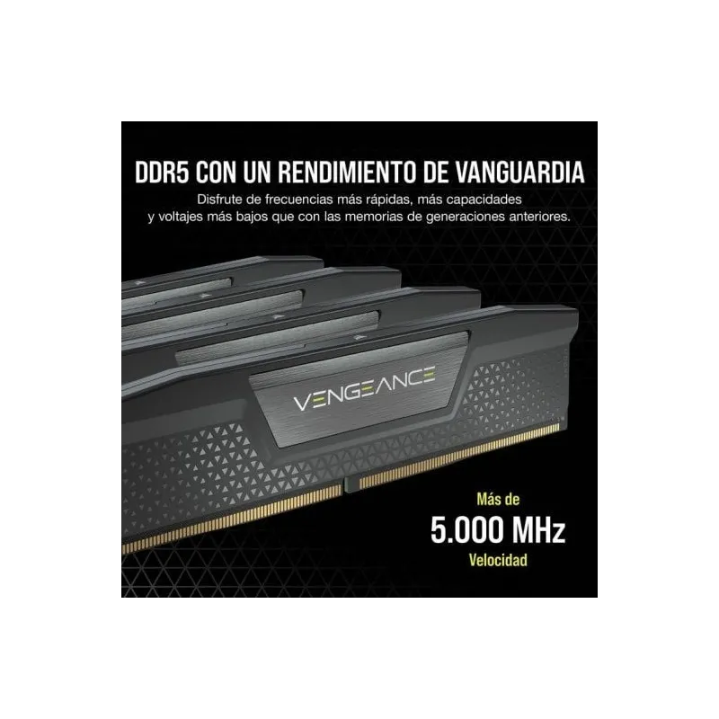 KIT DE MEMORIA DDR5 DRAM VENGEANCE DE 48 GB (2X24 GB) A 5600 MHZ C40 — NEGRO: CORSAIR VENGEANCE DDR5, optimizada para placas base Intel, ofrece las mayores frecuencias y capacidades de la tecnología DDR5 en un módulo compacto de alta calidad que se adapta a su sistema.
