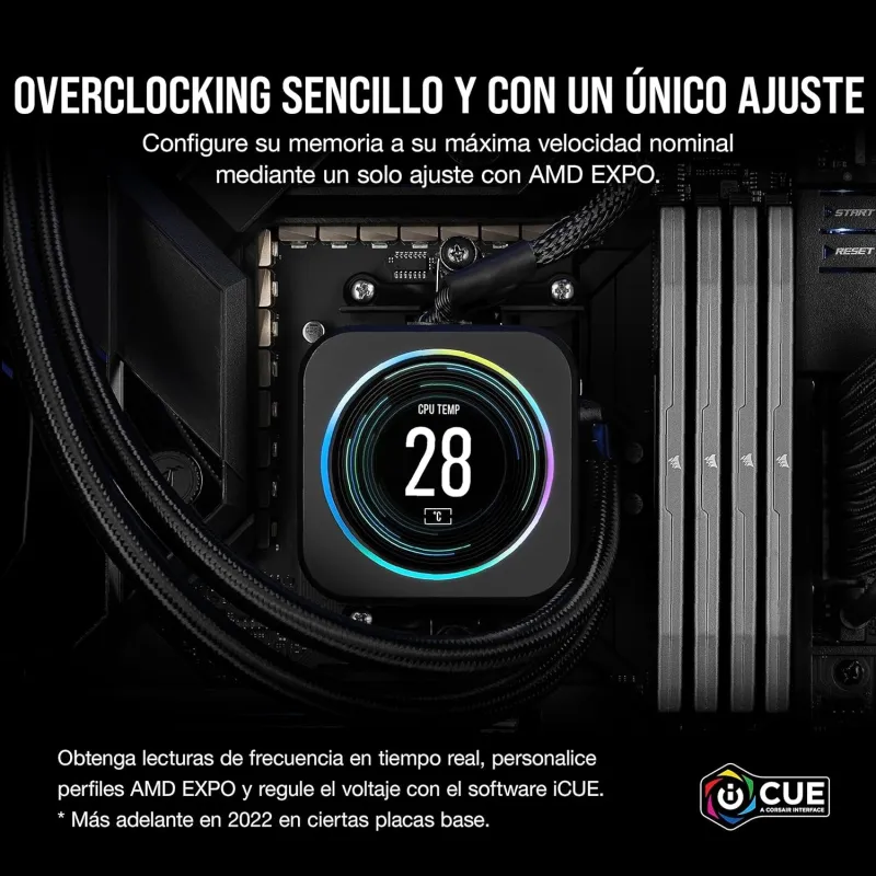 PERFILES ® EXPO PERSONALIZADOS DE AMD: Libérese del tedioso proceso de ajustar manualmente la configuración de rendimiento cada vez que guarde sus propios perfiles EXPO de AMD mediante iCUE.