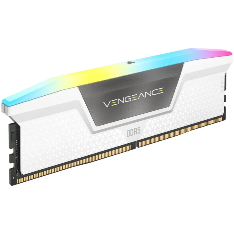 Memoria RAM Corsair VENGEANCE RGB DDR5 CMH32GX5M2X7200C34W con 32 GB DDR5, velocidad de 7200 MT/s, latencia CAS 34 y retroiluminación multicolor en blanco