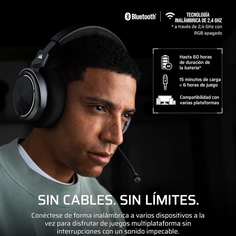 COMPLETAMENTE SUMERGIDO. SIEMPRE CONECTADO: Sumérgete en los juegos mientras te mantienes conectado a tu smartphone con nuestro auricular inalámbrico de doble conexión. Su batería de 60 horas* te permite jugar durante días, sin perder llamadas ni mensajes. Disfruta de un audio cristalino en ambos dispositivos mientras equilibras el juego intenso con la conectividad del mundo real, todo en un paquete duradero y de alto rendimiento.