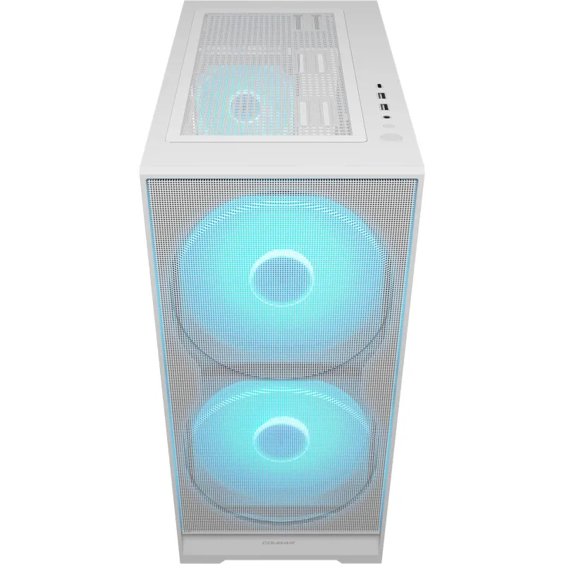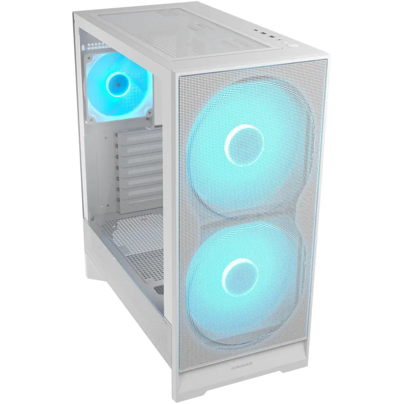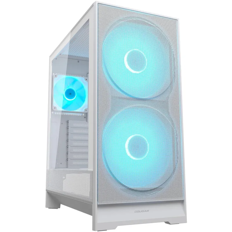 Torre Cougar AIRFACE 180 Blanco con ventiladores 180 mm, panel de vidrio templado, iluminación RGB y soporte para refrigeración líquida