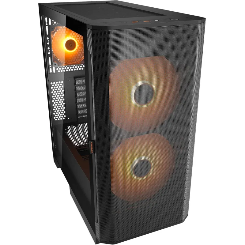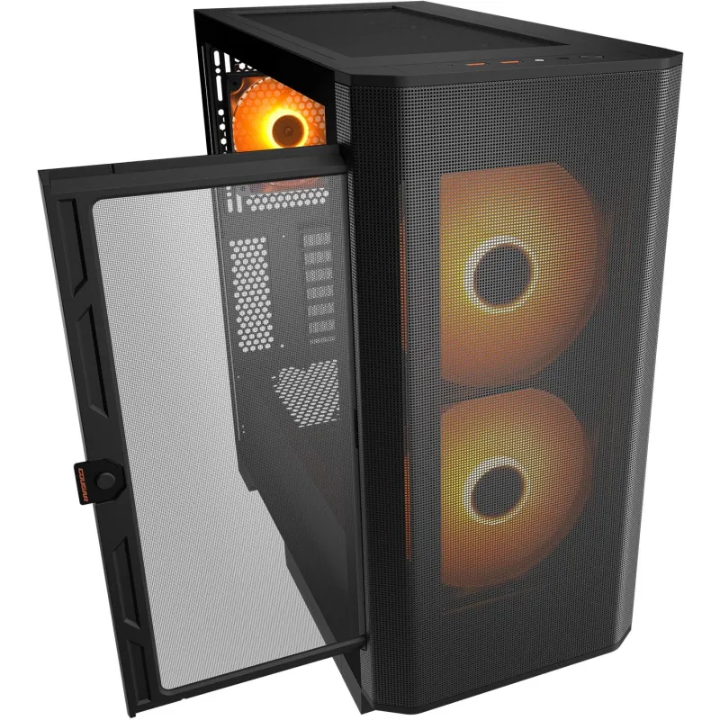 Torre Cougar AIRFACE FLO RGB Negro con ventiladores frontales 180 mm, panel de vidrio templado y soporte para placas base EATX, ATX y más