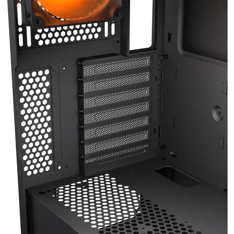 Diseñada para entornos exigentes, la Torre Cougar AIRFACE FLO RGB Negro admite radiadores superiores de hasta 360 mm y un radiador trasero de 140 mm, lo que permite instalar sistemas de refrigeración líquida de alto rendimiento. Esta capacidad resulta clave para mantener temperaturas estables en configuraciones que incluyen placas base EATX y tarjetas gráficas de gran tamaño. Además, cuenta con espacio suficiente para instalar hasta tres ventiladores superiores, lo que incrementa aún más la eficiencia térmica del sistema. Todo esto hace que esta torre sea ideal para usuarios que buscan estabilidad térmica, estética y compatibilidad con hardware de última generación.