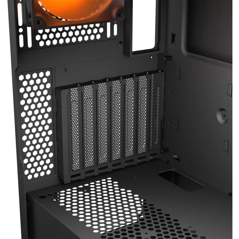 La Torre Cougar AIRFACE FLO RGB Negro viene equipada con dos ventiladores frontales 180 mm que aseguran un flujo de aire excepcional desde el primer momento. Esta característica no solo mejora la refrigeración general del sistema, sino que también permite mantener temperaturas óptimas durante largas sesiones de uso intensivo. Gracias a su diseño optimizado para el rendimiento térmico, esta torre es ideal para usuarios exigentes que requieren estabilidad y eficiencia. Los ventiladores frontales 180 mm también están dotados de iluminación RGB multicolor, lo que añade un toque visual impactante y personalizable al conjunto, elevando la estética del equipo sin comprometer la funcionalidad.