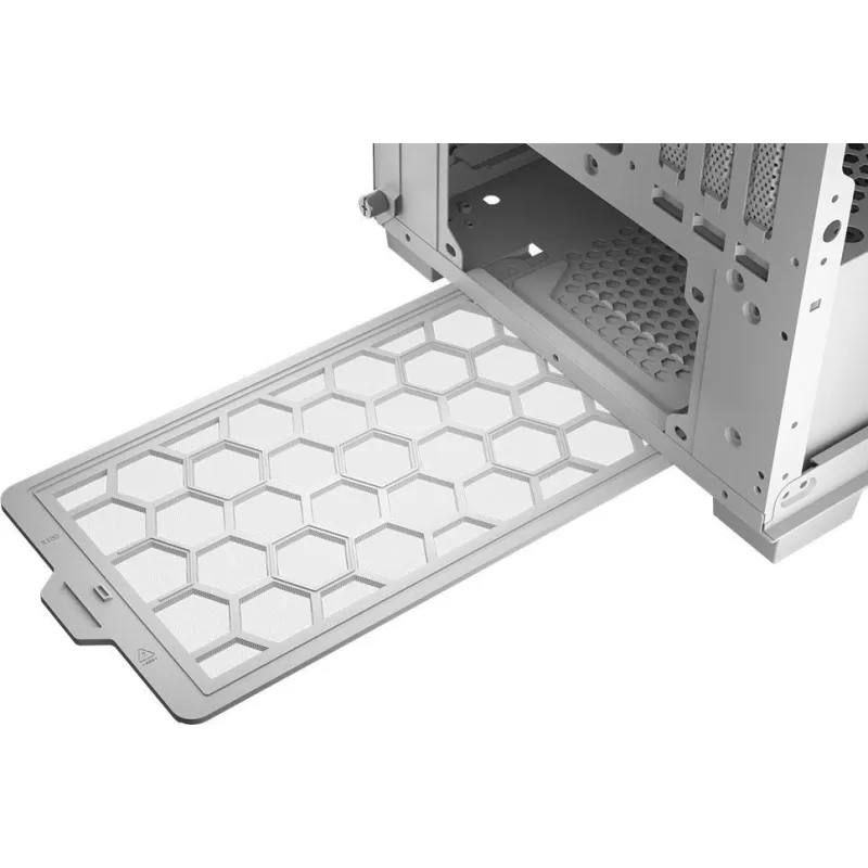 Optimizado para un flujo de aire impecable, incluye 3 ventiladores frontales de 120 mm y un ventilador trasero, con la posibilidad de incorporar ventiladores adicionales en la parte superior e inferior, así como opciones para enfriamiento líquido con soporte para radiadores de hasta 360 mm. La gestión de cables y el filtro anti-polvo garantizan una instalación limpia y eficiente, maximizando el rendimiento de tu setup.