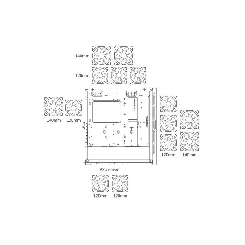 - Diámetros de ventiladores superiores soportados: 120,140 mm