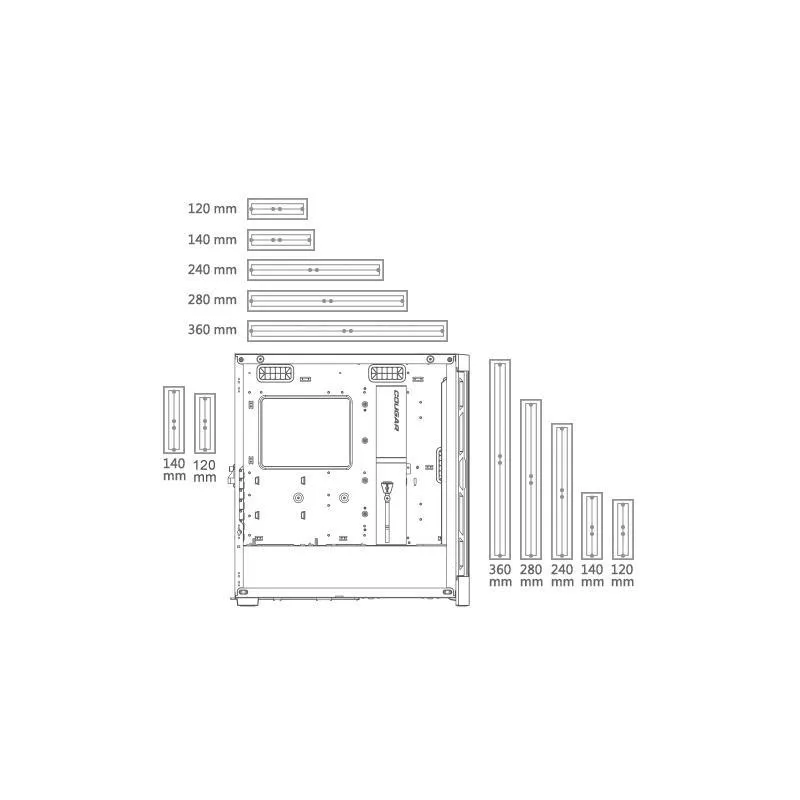- Tamaños compatibles con el radiador frontal: 120,140,240,280,360 mm