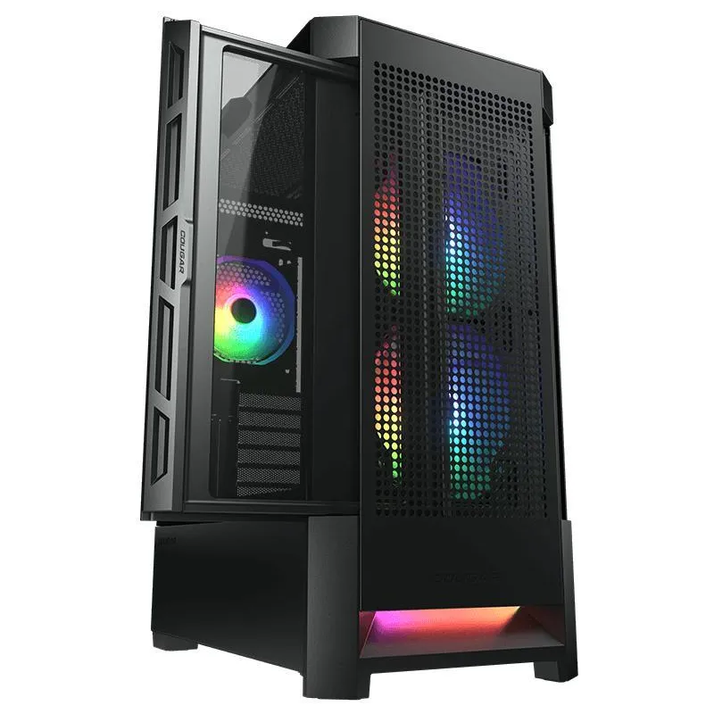 Torre Cougar AirFace RGB Mid Tower Cristal Templado USB-C 5 Ventiladores Soportados 2 Ventiladores Frontales Instalados Negra