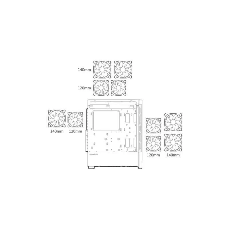 - Diámetros de ventiladores superiores soportados: 120,140 mm