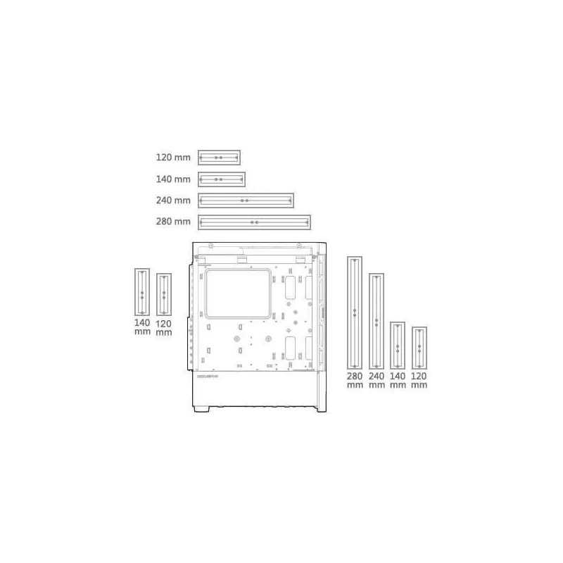 - Tamaños compatibles con el radiador frontal: 120,140,240,280 mm