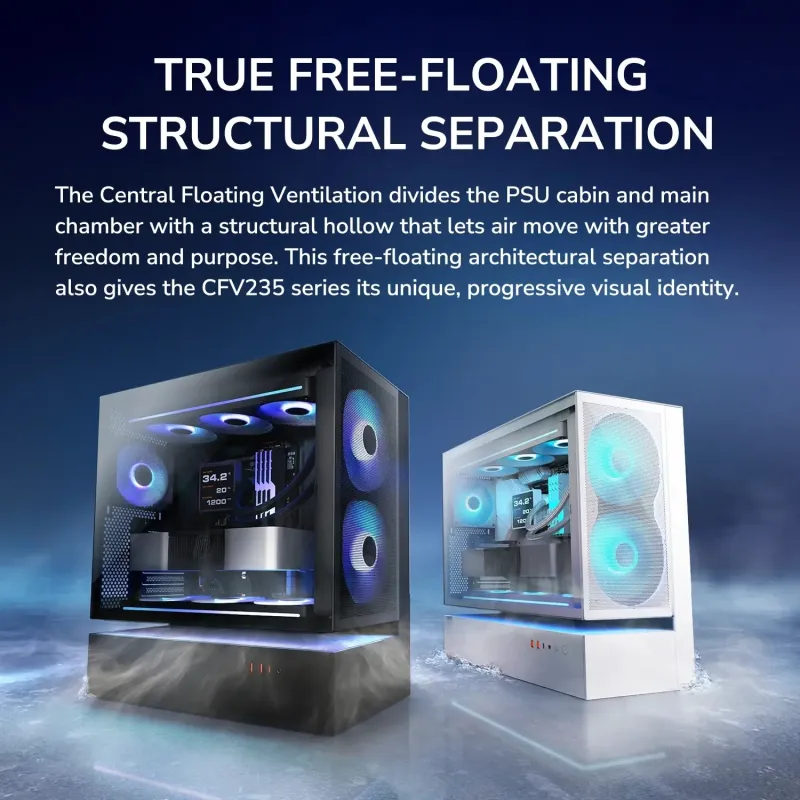 Cougar CFV235 Mesh Black es una base semitorre con frontal de malla y estética negra. Antes de comprar, confirma en la web oficial compatibilidades de placa, GPU, disipador y radiadores para asegurar un montaje sin sorpresas. Si priorizas un flujo de aire directo y diseño sobrio, esta referencia encaja bien como chasis de partida.