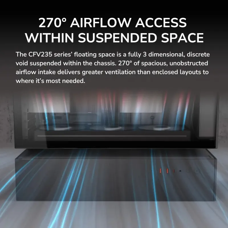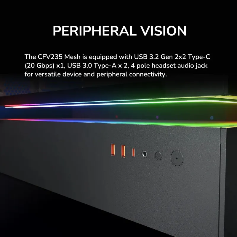 Caja semitorre — Cougar CFV235 Mesh Negro: chasis de malla frontal , pensado para equipos de sobremesa que priorizan flujo de aire y estética limpia.
