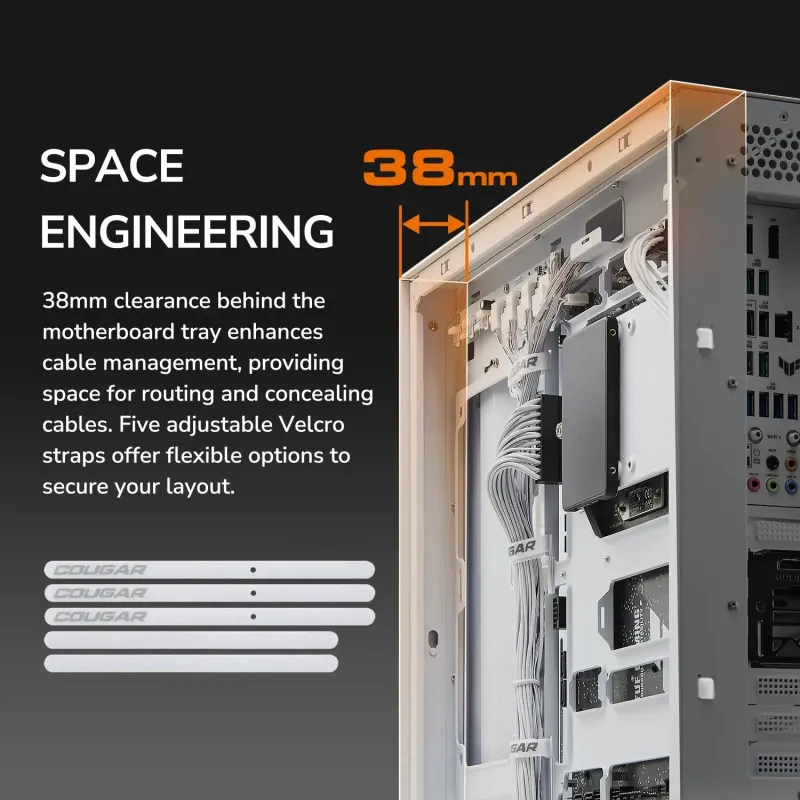 • Elige componentes pensando en orden y mantenimiento; revisa la ficha oficial de Cougar para compatibilidad concreta.
