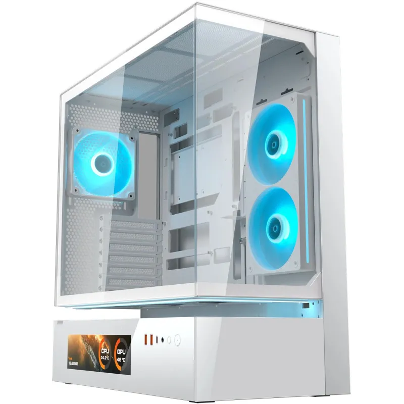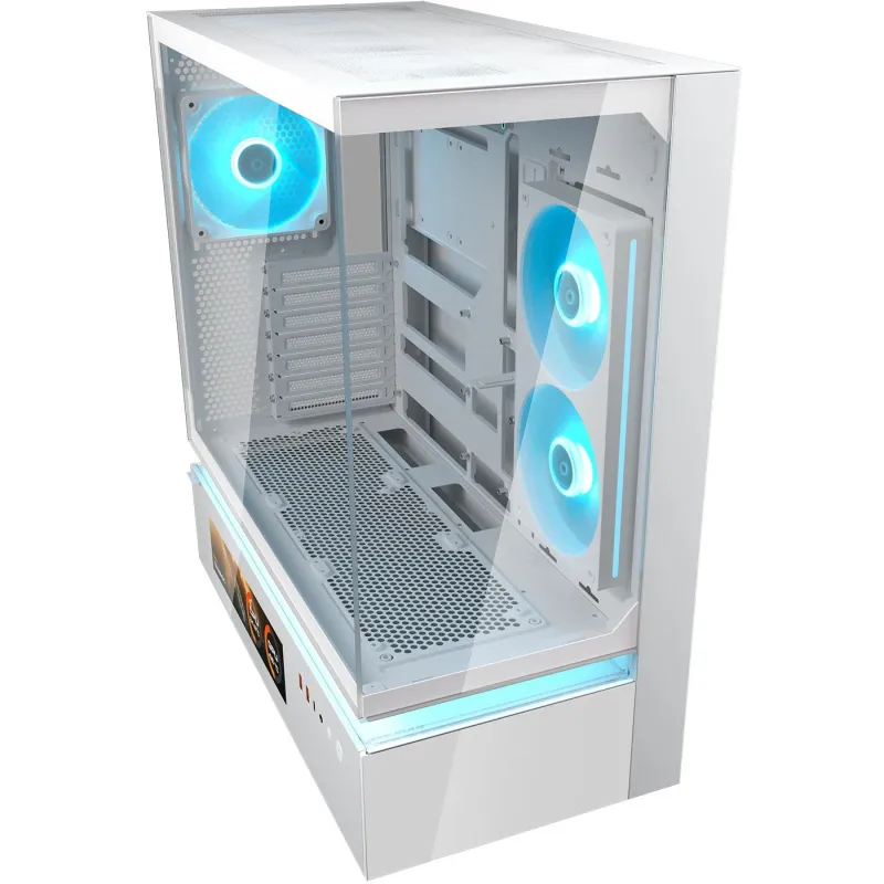 Torre Cougar CFV235 Vision Blanco con pantalla LCD 9.16 pulgadas, ventiladores 120 mm incluidos y diseño con vidrio templado y RGB