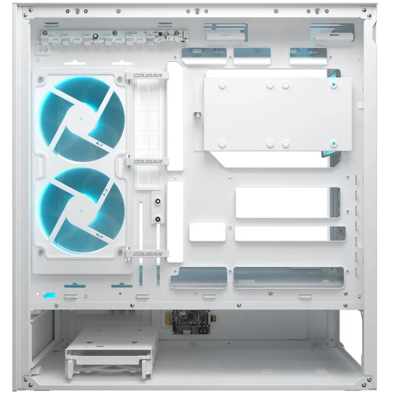 La Torre Cougar CFV235 Vision Blanco soporta placas base ATX, CEB, Micro ATX y Mini-ITX, lo que le otorga una gran flexibilidad de configuración. Dispone de siete ranuras de expansión, dos bahías de 3.5 pulgadas y dos de 2.5 pulgadas, permitiendo una amplia capacidad de almacenamiento. Además, admite tarjetas gráficas de hasta 43 cm de longitud y disipadores de CPU de hasta 17,5 cm de altura, lo que la convierte en una torre ideal para sistemas potentes. Su diseño interno facilita una gestión de cables limpia y eficiente, mejorando tanto el flujo de aire como la estética del montaje final.