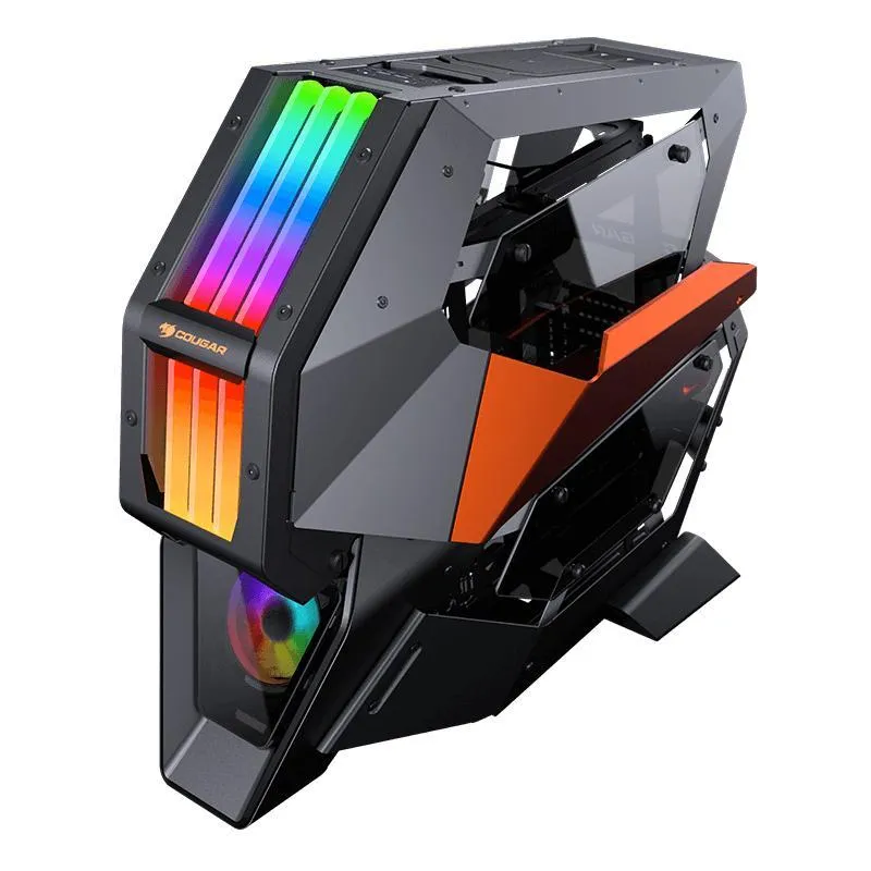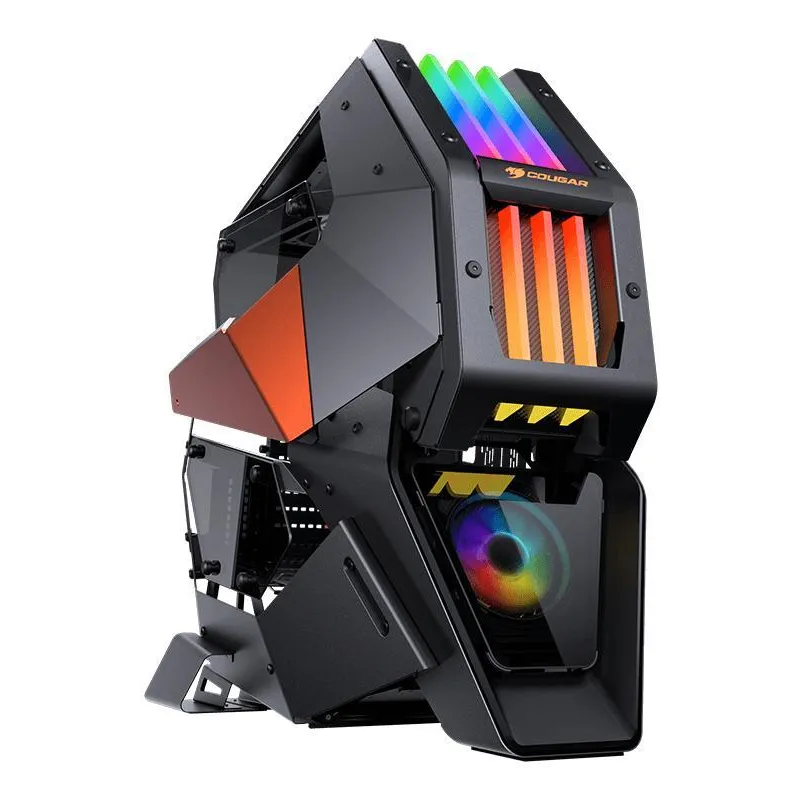 CAJA DE JUEGOS DEFINITIVA TOTALMENTE NUEVA: COUGAR CONQUER 2 rompe con los diseños tradicionales de cajas con un marco de metal único, subchasis y sistema de iluminación ARGB integrado. Tus audaces conceptos de modificación son alcanzables con la creación de lo ilimitado. ¡El sueño de un modder hecho realidad!