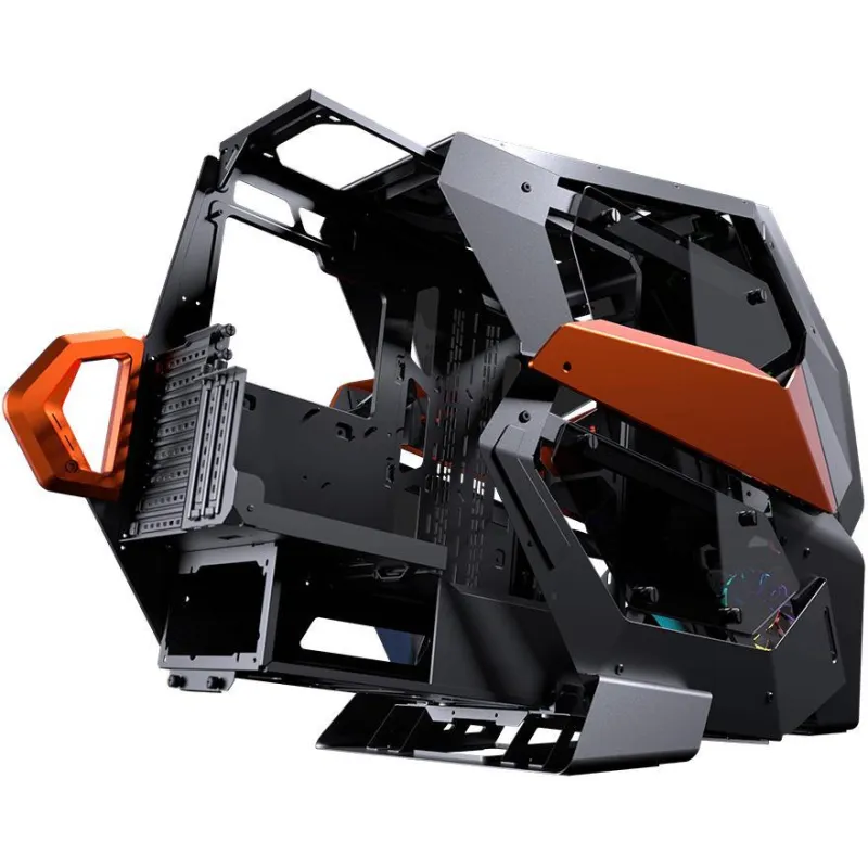 Descubre el mundo del gaming con un diseño de metal robusto y un impresionante formato Full Tower, ideal para entusiastas del rendimiento y estilo. Este chasis de PC en negro y naranja es compatible con una amplia gama de tarjetas madre, incluyendo ATX, CEB, micro ATX y Mini-ITX, ofreciendo flexibilidad incomparable en la construcción de tu sistema. Con 10 ranuras de expansión, permite una personalización ilimitada, mientras que su ventana lateral y iluminación multicolor en ventiladores, frente e interior, proporcionan una estética visual asombrosa.