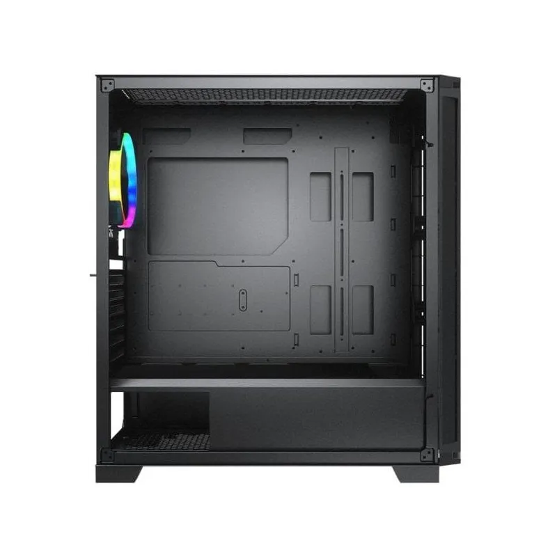 Optimiza la ventilación de tu equipo gracias a su capacidad para soportar hasta 6 ventiladores de diferentes tamaños, con un ventilador trasero de 120 mm ya instalado y soporte para enfriamiento líquido, asegurando así un rendimiento térmico óptimo. Integra un botón de control de iluminación RGB para personalizar el ambiente visual de tu torre. Además, los puertos USB 3.2 Gen 1 de alta velocidad facilitan una conectividad fluida con tus dispositivos.