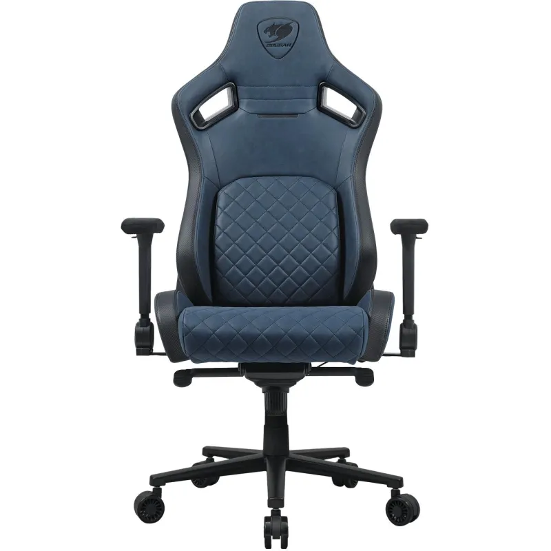 Silla Gaming Cougar Defensor S Navy Blue F con reposabrazos 4D, estructura de acero, asiento de tela marina y soporte para peso máximo de 150 kg