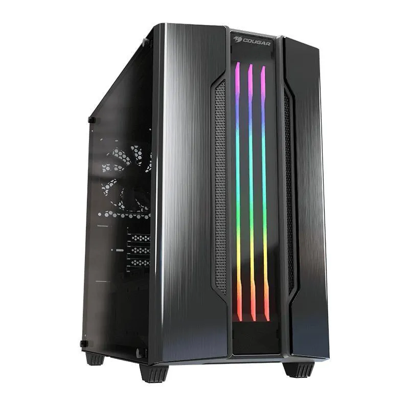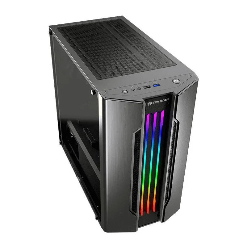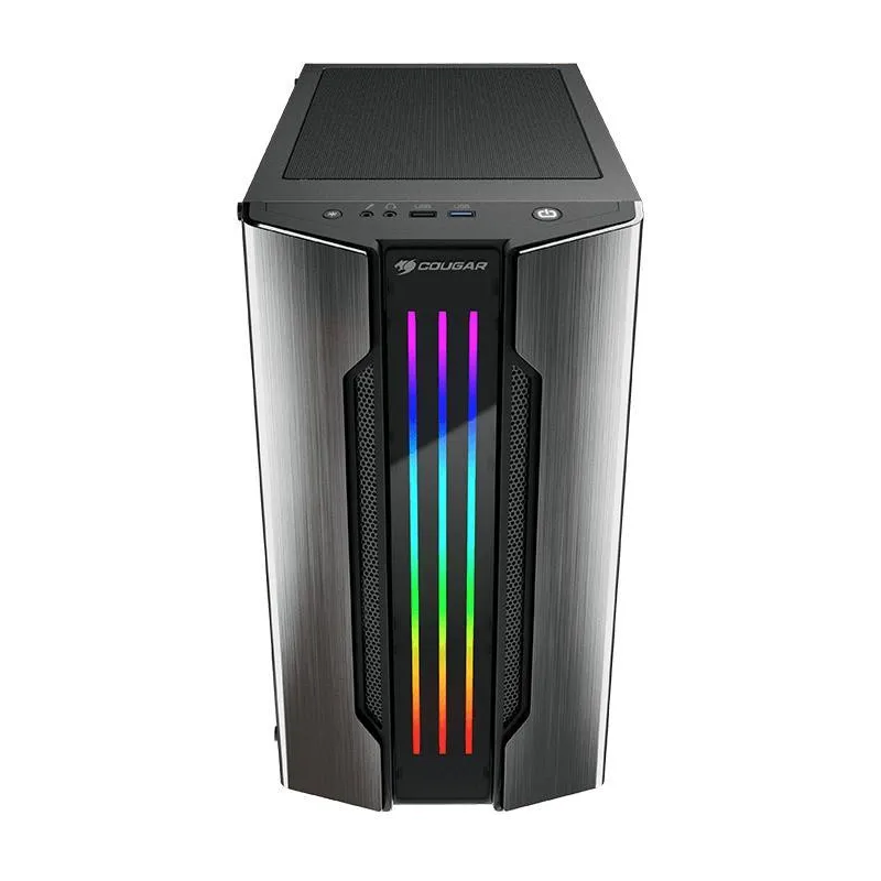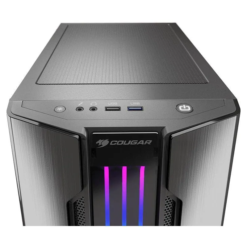 COUGAR TE TRAE UNA NUEVA VERSIÓN DEL DISEÑO REVOLUCIONARIO DE GEMINI M EN UN FORMATO TOTALMENTE NUEVO: Gemini M es un gabinete compacto que te ofrece un rendimiento de alta gama, la exclusiva iluminación RGB Trelux de COUGAR y un elegante panel frontal con acabado metálico cepillado.
