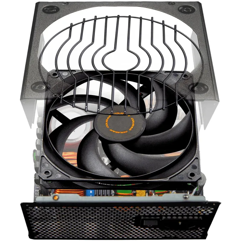 REFRIGERACIÓN SILENCIOSA Y EFICIENTE: El sistema de refrigeración activo de la Fuente de Alimentación Cougar GLE-1200 incorpora un ventilador de 13,5 cm con tecnología HDB, que proporciona un flujo de aire constante con un nivel de ruido reducido. Este ventilador está ubicado estratégicamente en la parte superior para maximizar la ventilación dentro del chasis. Gracias a su diseño eficiente, la fuente mantiene una temperatura óptima incluso bajo cargas intensas. Su certificación 80 PLUS Gold y sus 1200 W de potencia garantizan un funcionamiento estable, silencioso y duradero, ideal para largas sesiones de uso intensivo sin sobrecalentamientos.