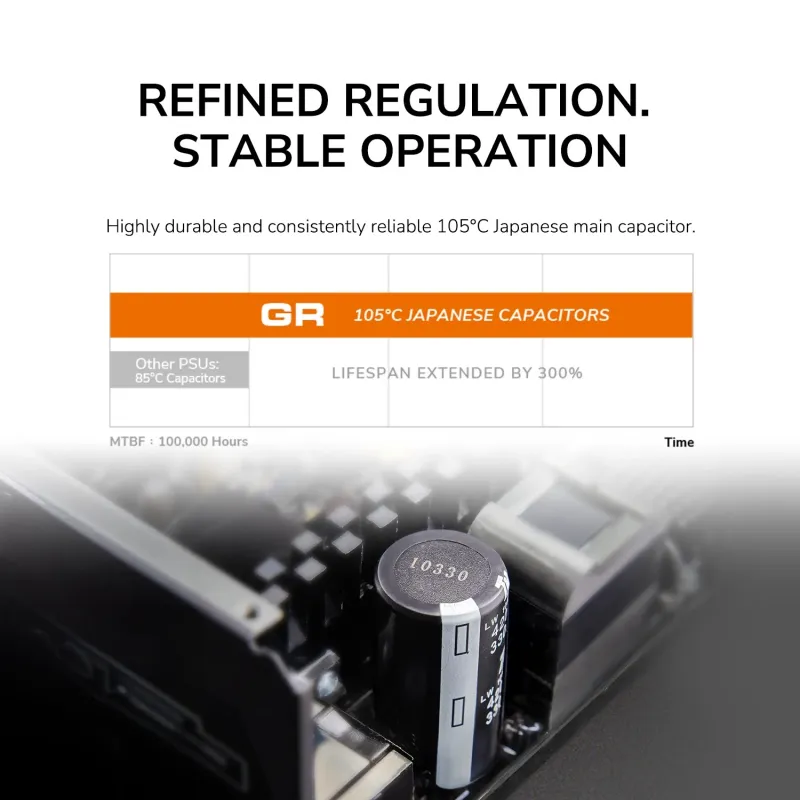 RENDIMIENTO ESTABLE CON 750 W DE POTENCIA REAL: La Fuente de Alimentación Cougar GR750 proporciona una potencia total 750 W que garantiza un funcionamiento fiable incluso en sistemas exigentes. Esta potencia se distribuye de forma eficiente a través de sus líneas de salida, especialmente en la línea de +12V con 62.5A, ideal para alimentar componentes como procesadores y tarjetas gráficas de alto rendimiento. Su diseño robusto y compacto permite una instalación sencilla sin comprometer el flujo de aire dentro del chasis. Además, su compatibilidad con una amplia gama de voltajes de entrada (100–240V~) y frecuencias (50–60 Hz) la convierte en una opción versátil para configuraciones internacionales. La Fuente de Alimentación Cougar GR750 es perfecta para quienes buscan estabilidad, eficiencia y potencia en un solo producto.
