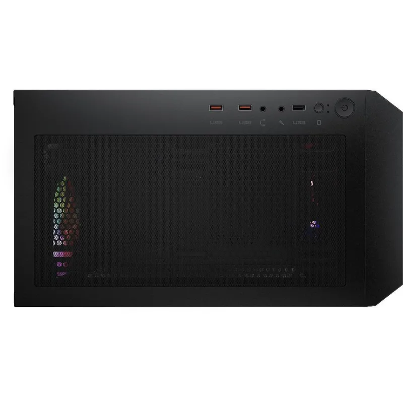 EXPERIENCIA VISUAL SIN IGUAL: La estructura de este diseño se despliega como una obra de arte en la que la funcionalidad y la estética se encuentran en perfecta armonía. Su factor de forma Midi Tower no solo maximiza el espacio interno, sino que también proporciona una plataforma robusta para componentes de alto rendimiento. El elegante color negro del producto le confiere un aire de sofisticación que se complementa con el brillo vibrante de las luces multicolor. Estas luces, ubicadas estratégicamente en los ventiladores de la caja, transforman cualquier espacio de trabajo en un espectáculo de color y tecnología. Además, el panel de vidrio templado no solo ofrece una mirada directa al corazón de la máquina, sino que también refuerza la durabilidad y el estilo del diseño.