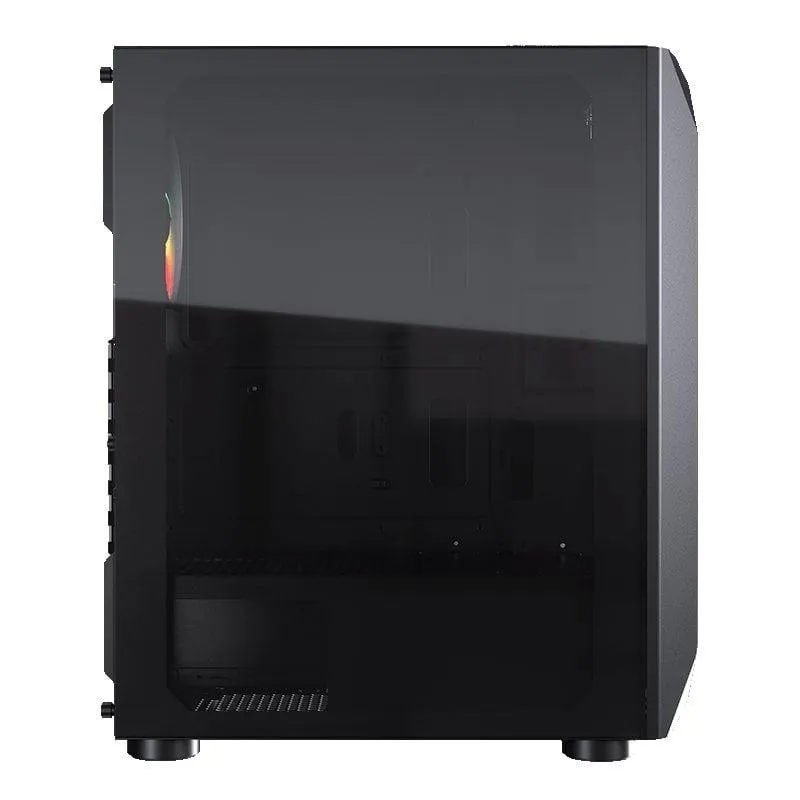 Descubre la excelencia en diseño y funcionalidad con nuestra torre para PC, ideal para los entusiastas del juego. Con un factor de forma Midi Tower, este chasis combina elegancia y robustez gracias a su construcción en vidrio y metal. Su apariencia en negro y transparente se complementa con paneles de vidrio templado y una ventana lateral que ofrece una vista espectacular de los componentes internos, acentuada por una iluminación RGB personalizable en colores azul, verde y rojo. Optimizada para diferentes configuraciones, soporta tarjetas madre ATX, micro ATX y Mini-ITX.