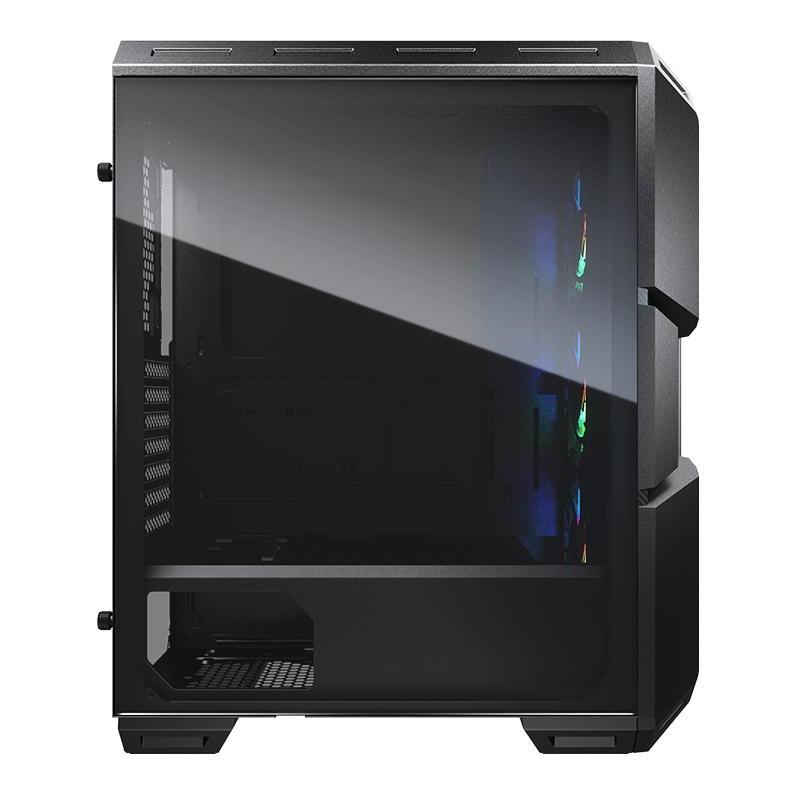 PANEL IZQUIERDO DE VIDRIO TEMPLADO MASIVO: Con la cubierta de PSU de longitud completa que oculta cables y un panel izquierdo de vidrio templado masivo que presenta una construcción limpia y ordenada, puedes construir fácilmente un sistema de nivel profesional.