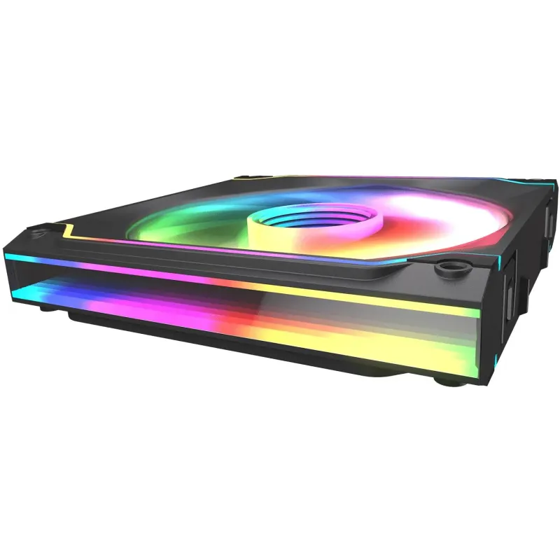 VENTILADOR MODULAR ILUMINADO CON ESPEJO INFINITO: Los ventiladores modulares son el camino del futuro: el sistema de conexión de liberación rápida permite una fácil conexión en cadena para un montaje rápido y sin complicaciones. Los Canales de Flujo de Aire Mejorados mejoran la eficiencia y reducen el ruido al separar el flujo de aire en corrientes mínimas; el diseño de espejo infinito ofrece efectos de iluminación dinámicos, complementados por un borde LED que crea un contorno continuo.