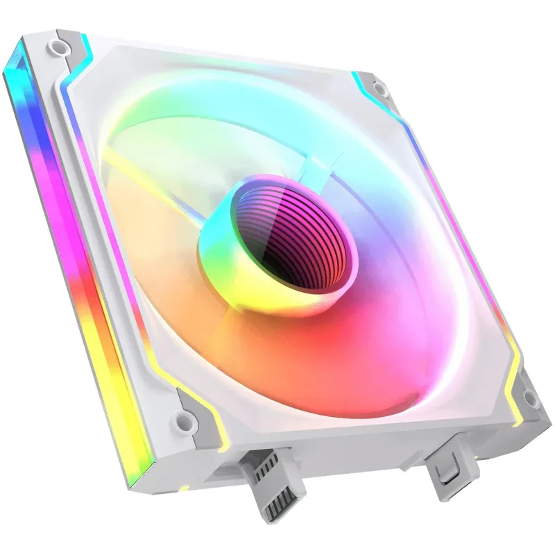 VENTILADOR MODULAR ILUMINADO CON ESPEJO INFINITO: Los ventiladores modulares son el camino del futuro: el sistema de conexión de liberación rápida permite una fácil conexión en cadena para un montaje rápido y sin complicaciones. Los Canales de Flujo de Aire Mejorados mejoran la eficiencia y reducen el ruido al separar el flujo de aire en corrientes mínimas; el diseño de espejo infinito ofrece efectos de iluminación dinámicos, complementados por un borde LED que crea un contorno continuo.