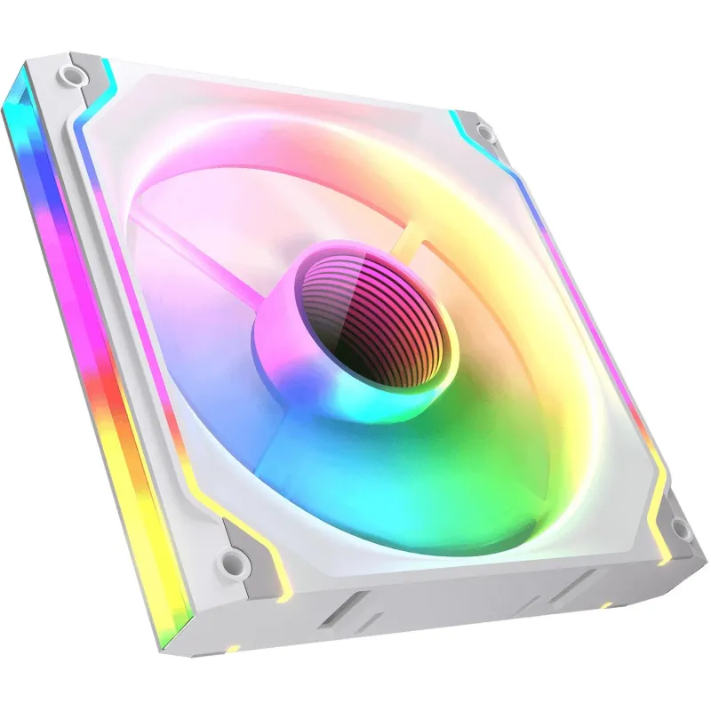 VENTILADOR MODULAR ILUMINADO CON ESPEJO INFINITO: Los ventiladores modulares son el camino del futuro: el sistema de conexión de liberación rápida permite una fácil conexión en cadena para un montaje rápido y sin complicaciones. Los Canales de Flujo de Aire Mejorados mejoran la eficiencia y reducen el ruido al separar el flujo de aire en corrientes mínimas; el diseño de espejo infinito ofrece efectos de iluminación dinámicos, complementados por un borde LED que crea un contorno continuo.