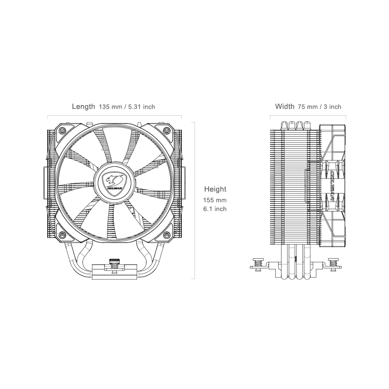 * Para maximizar el rendimiento, recomendamos un segundo ventilador COUGAR MHP 120 (se vende por separado)
