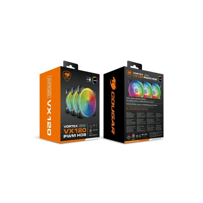 Cougar Vortex VX120 PWM HDB Pack 3 Ventiladores Suplementarios ARGB 120mm