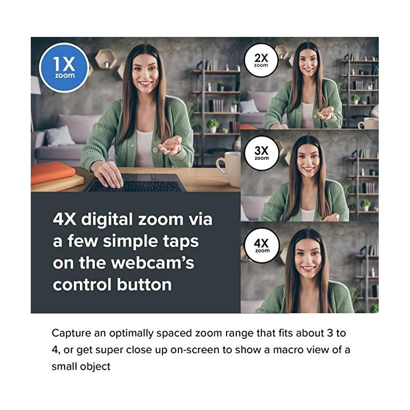 AJUSTA EL ÁNGULO DE VISIÓN Y EL ZOOM DIGITAL A TU GUSTO: No te limites a una cámara web que solo capta una parte de tu entorno. Con la cámara web de Creative Labs, podrás ajustar el ángulo de visión hasta 95 grados, lo que te permitirá abarcar más espacio y mostrar más elementos en tu pantalla. Además, podrás acercar o alejar la imagen con un zoom digital de hasta 4X, para enfocar lo que más te interese en cada momento.