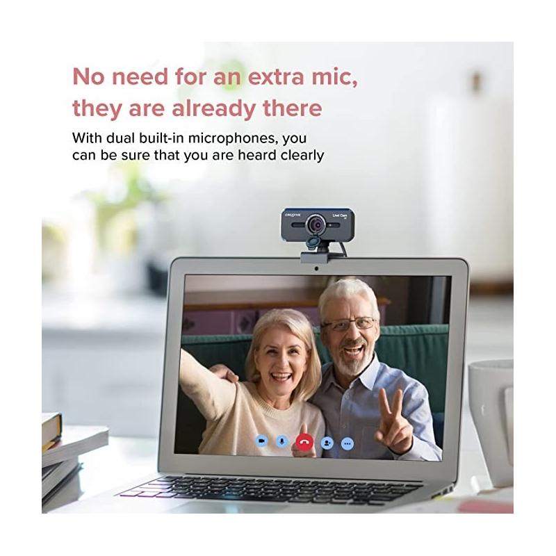 DISFRUTA DE UN SONIDO CLARO Y NATURAL CON LOS MICRÓFONOS INTEGRADOS: La calidad de imagen no es lo único que importa en una videollamada. También es esencial que se escuche bien tu voz, sin ruidos ni distorsiones. Por eso, la cámara web de Creative Labs cuenta con micrófonos integrados que captan el sonido de forma clara y natural, eliminando el eco y el ruido ambiental. Así, podrás comunicarte con tus interlocutores sin problemas y sin necesidad de usar auriculares o altavoces externos.
