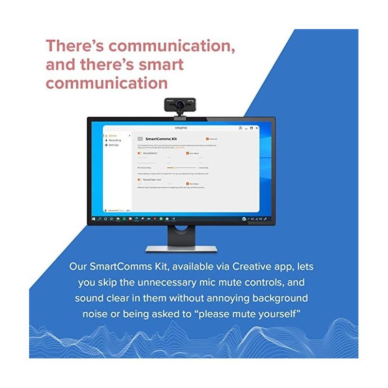 CONÉCTATE FÁCILMENTE CON CUALQUIER PLATAFORMA CON EL CABLE USB: La cámara web de Creative Labs es compatible con Windows PC y macOS, y se conecta fácilmente a través de un cable USB de 1.8 m de longitud. No necesitas instalar ningún software ni controlador adicional, solo enchufarla y empezar a usarla. Además, si tienes Windows PC, podrás disfrutar del SmartComms Kit, una aplicación exclusiva de Creative que te ofrece funciones avanzadas como el silenciamiento automático, la cancelación de ruido o el ajuste del volumen.