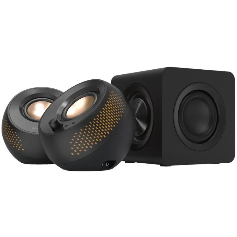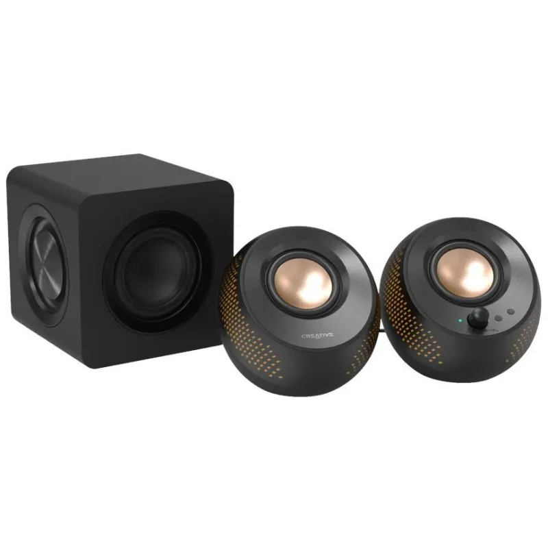 El Creative Pebble X Plus es un sistema 2.1 de sobremesa pensado para campo cercano: escritorio, habitación y uso diario con PC o portátil. La gracia está en lo práctico: subwoofer para dar cuerpo sin tener que subir el volumen de los satélites y conexión flexible para no depender de una sola fuente.